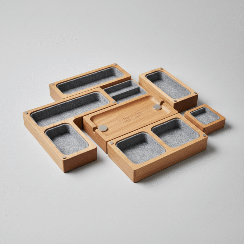 €84.99 (inkl. MwSt)Modulares Schreibtisch-Organizer-Set Nachhaltiger Eiche Recycelter Filz