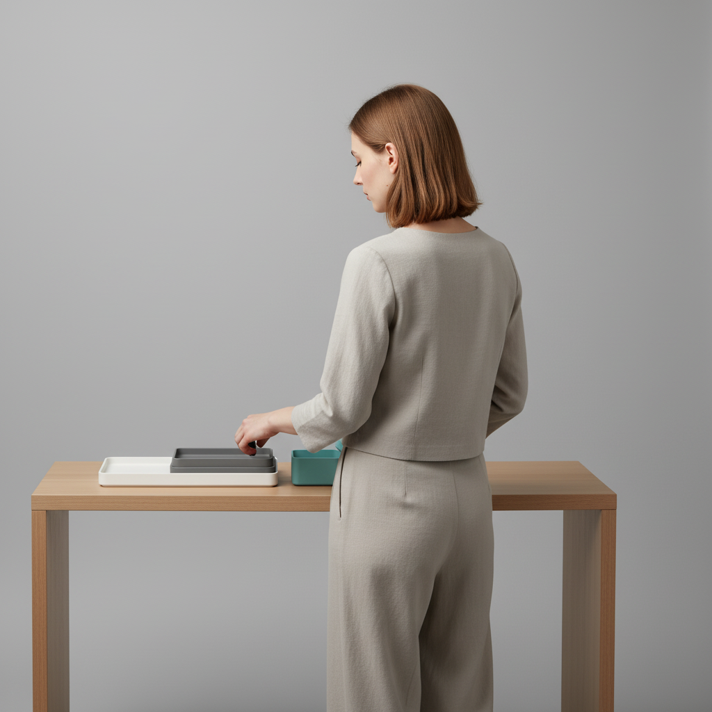Das MetroStack Vanity System bringt stilvolle Ordnung auf Ihren Waschtisch. Dieses stapelbare Organizer-Set wurde speziell für die flexible Aufbewahrung Ihrer täglichen Utensilien im Badezimmer entwickelt. Ob Kosmetika, Schmuck oder Accessoires – mit MetroStack haben Sie alles griffbereit und übersichtlich arrangiert, ideal für ein aufgeräumtes und ästhetisches Ambiente.