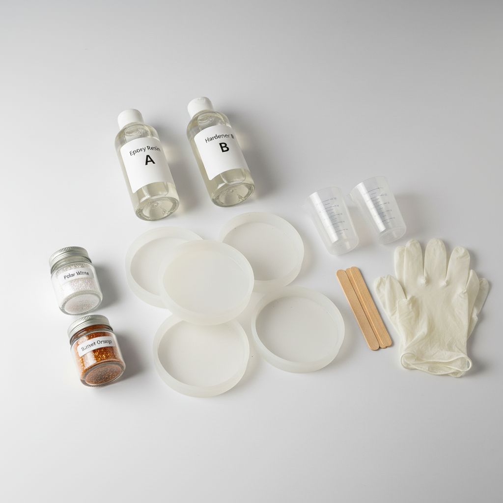 • Komplettes Gießharz-Set für vier individuelle Untersetzer
