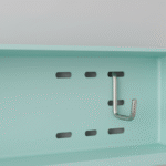 • Modularität: Flexibel anpassbare Ablageflächen und Haken, die sich nach Bedarf verschieben oder entfernen lassen.