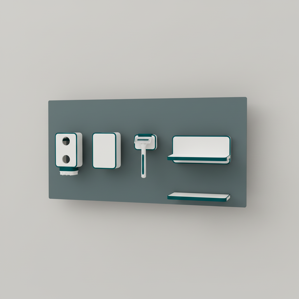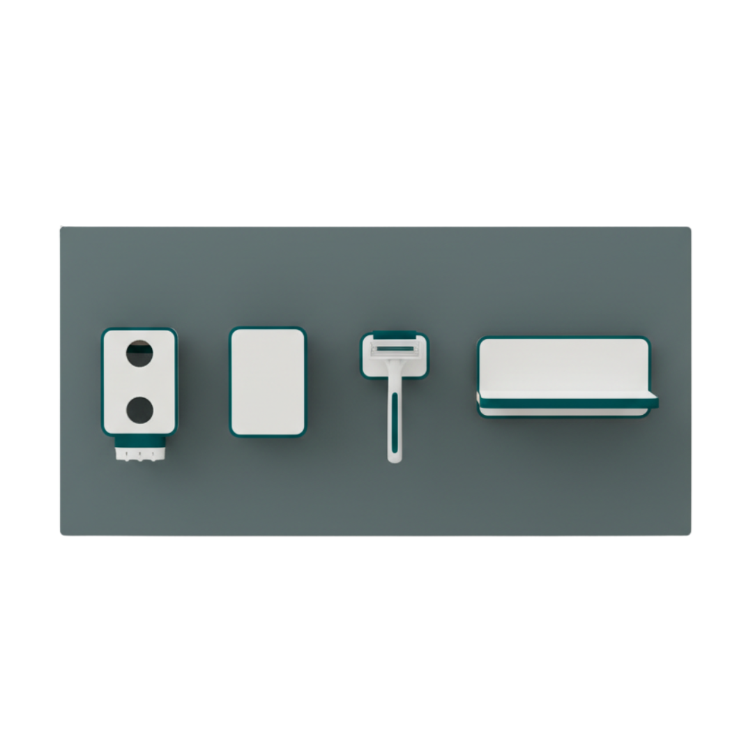 Revolutioniert Ihre Badorganisation. Dieses innovative Wandorganizer-Set bietet höchste Flexibilität durch magnetisch haftende Zubehörteile, die Sie jederzeit neu positionieren können. Schaffen Sie mühelos Ordnung und gewinnen Sie wertvollen Platz auf Ihrem Waschtisch zurück – ideal für ein modernes, aufgeräumtes Badezimmerambiente.