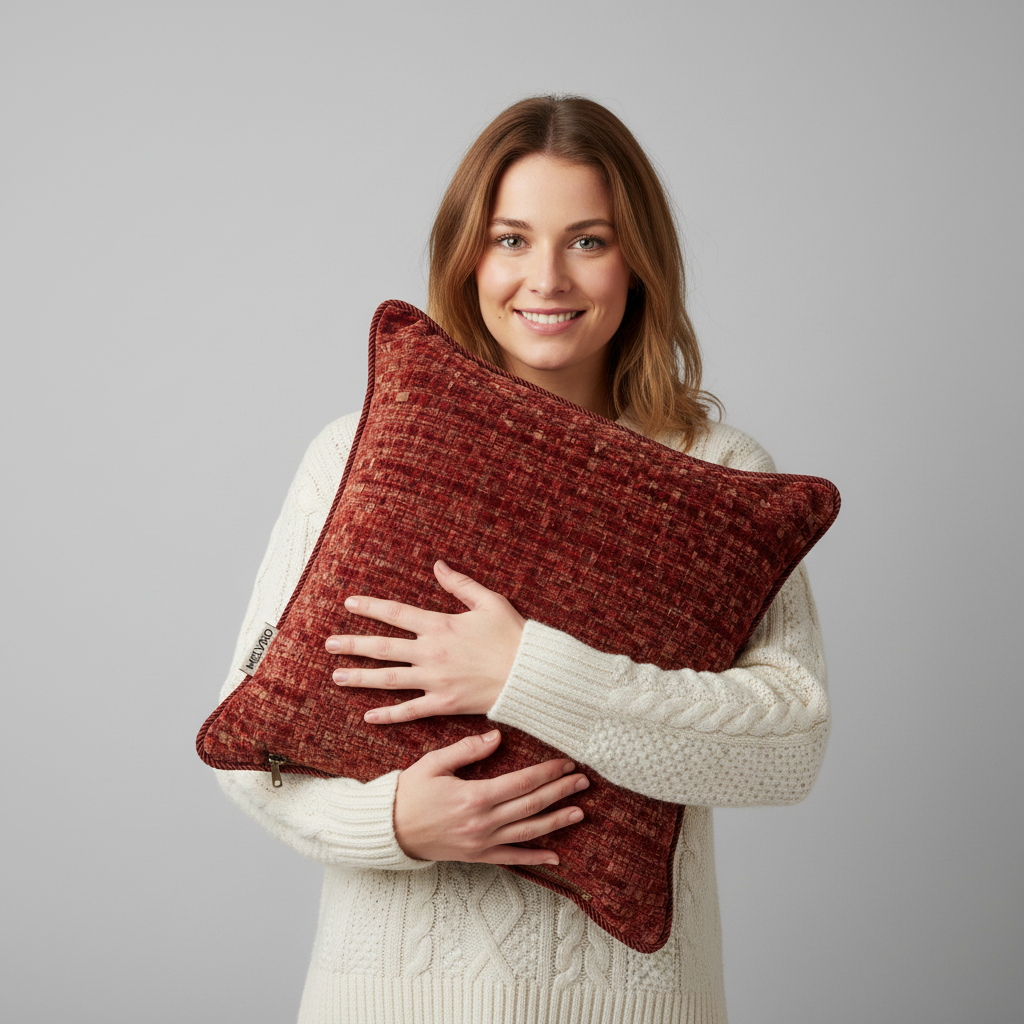 • 1 x MELVRO Glutrot Gemütlichkeit Struktursamt Kissenbezug (Ohne Füllung)