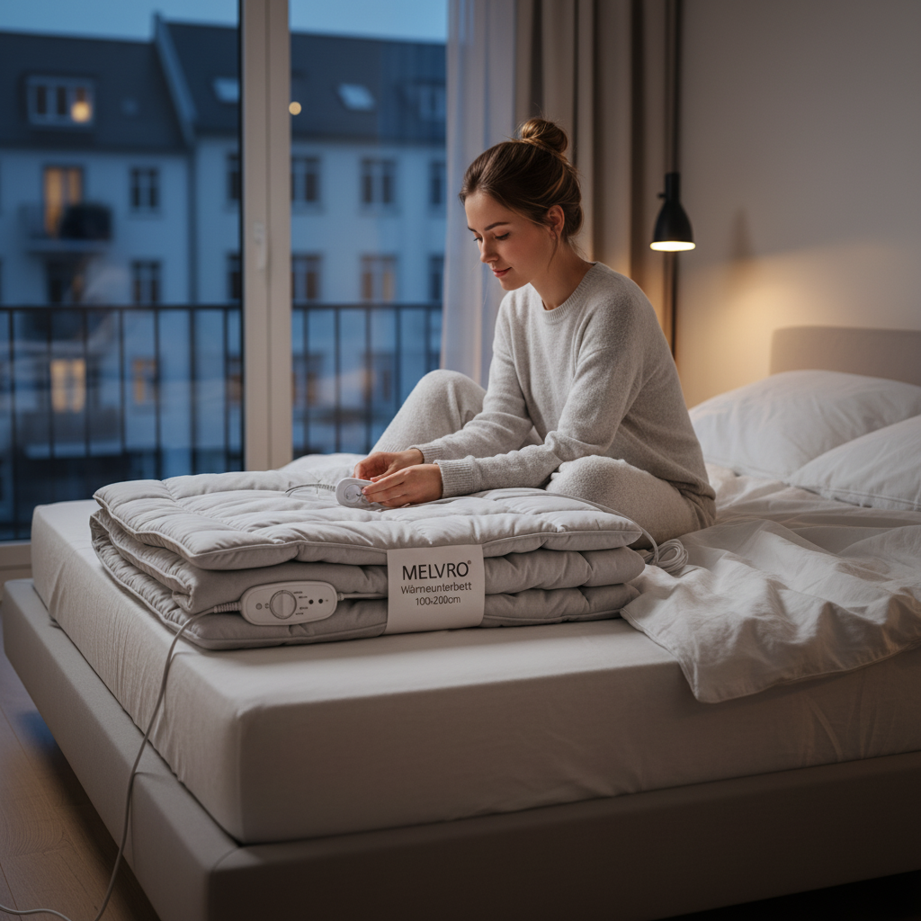 Verwandeln Sie Ihr Bett in eine Oase der Wärme mit dem MELVRO Wärmeunterbett. Genießen Sie wohlige Temperaturen und entspannte Nächte, selbst wenn es draußen kalt und ungemütlich ist. Ideal zur Linderung von Verspannungen und für einen tiefen, erholsamen Schlaf.