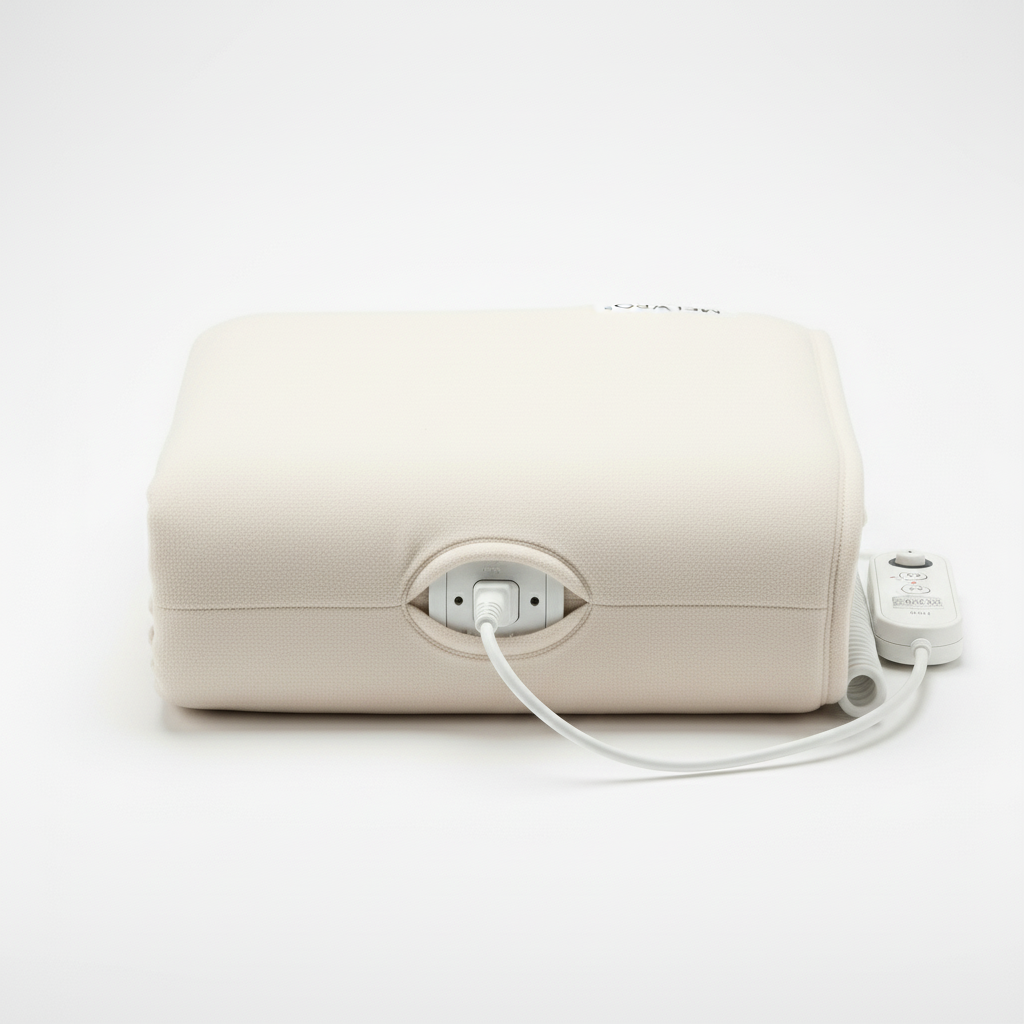Abmessungen: 90 x 190 cm, passend für Standard-Einzelbetten. Leistung: 60 Watt. Stromversorgung über abnehmbares Bedienelement mit LED-Anzeige.