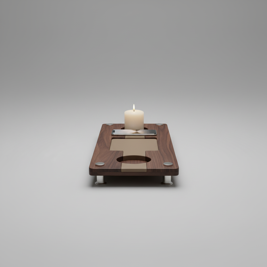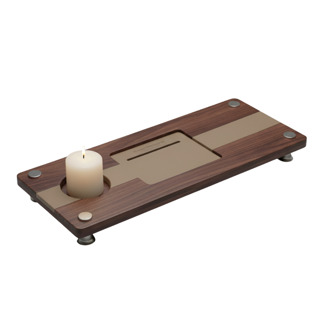 • Integrierte Halterungen für Kerzen, Smartphones und Gläser